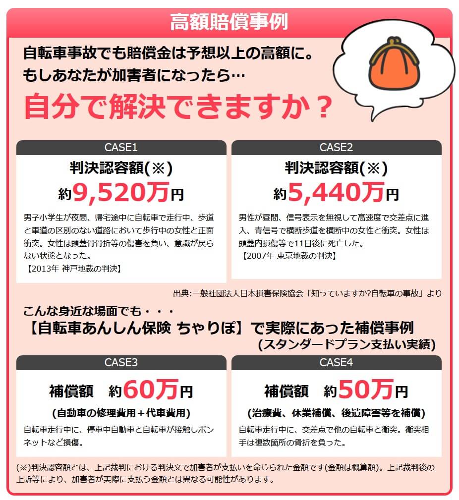 また、スタンダードプランは年齢制限が無いのも見逃せません。他社には70歳以上だと自転車保険に加入できないケースがありますが、この保険ならスタンダードプランになら加入できます。70歳を超えて自転車で猛スピードで走ることもないと考えれば、個人賠償補償も1000万円で十分かもしれません。
