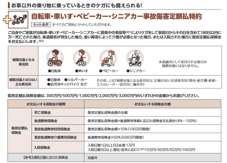- 自転車事故傷害定額払特約等