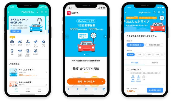 あんしんドライブ(1日自動車保険)は、PayPayほけんが2021年12月から販売している自動車保険です。PayPayほけんのサービス開始が2021年12月のため、サービス開始と同時に販売していることになります。