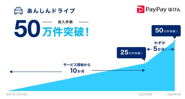 その中で「あんしんドライブ」もサービス開始から僅か10ヶ月で累計加入件数が25万件を突破し、その5ヵ月後の2023年2月段階で累計加入件数は50万件を突破しました。あんしんドライブについても契約数からすると評判は良さそうです。