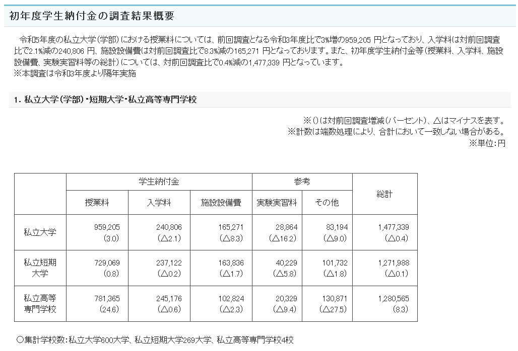 文部科学省の「私立大学等の令和5年度入学者に係る学生納付金等調査」によると、私立大学の平均の授業料は年間で約95万円です。近年は増額傾向にあり、7~8年前と比較すると5万円ほど増加しています。将来的には一段と高くなることが予想されるため、大学入学時・在学中コースが選べるメリットが一段と際立ちます。将来を見込んで基準保険金額を400万円(年100万円を4回)にすれば大学学費は学資金で賄える計算です。