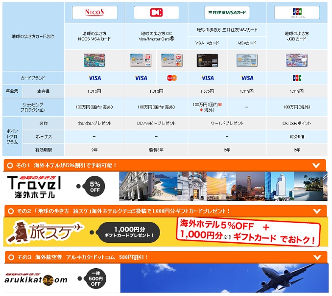 - 地球の歩き方カード(VISA,MasterCard,JCB)