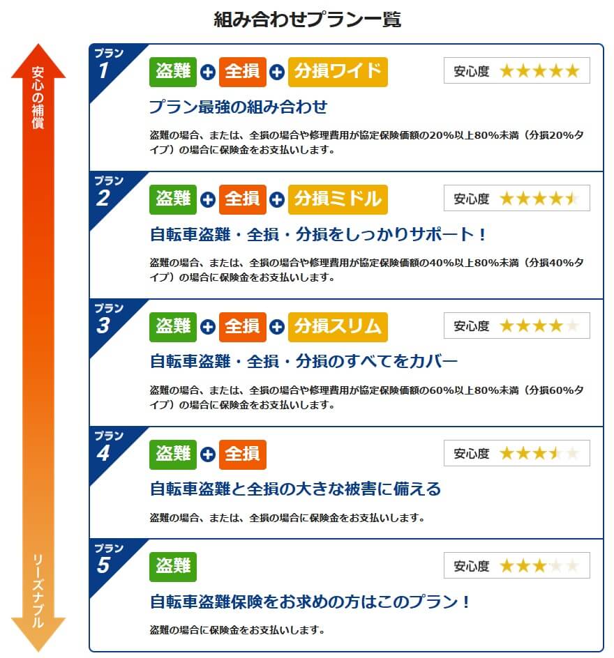 盗難+全損プランだと自転車が全損した場合のみ補償されますが、盗難+全損+分損スリムなら自転車の60~80%が損壊した場合でも補償されます。分損ミドルなら自転車の40~80%が損壊した場合でも補償され、分損ワイドなら自転車の20~80%が損壊した場合でも補償されます。