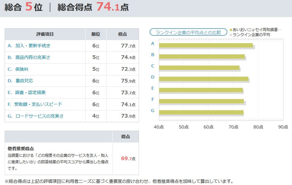 ドライバー保険(1日自動車保険)ではなく、スタンダードな自動車保険が対象ですが、オリコンの自動車保険 総合ランキング2025 代理店型ではあいおいニッセイ同和損保は5位でした。損保ジャパン(7位)よりは順位が上でしたが、東京海上(3位)・三井住友海上(4位)よりも順位が下でした。項目別のランキングでもロードサービスで4位以外は下位だったため、1日自動車保険でも同様の対応と考えると若干の不安があります。