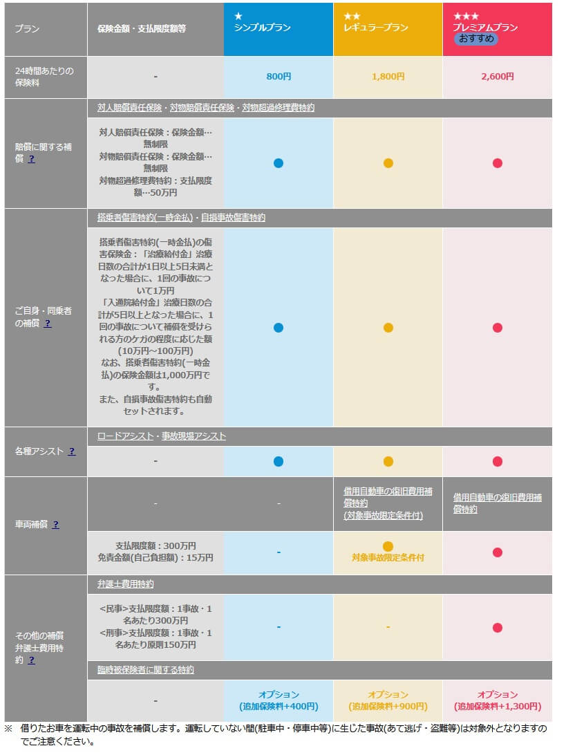 それでは以下で補償内容・保険料・メリット・デメリット・評判等を解説し、他社の短期自動車保険(1日自動車保険)と比較していきます。
