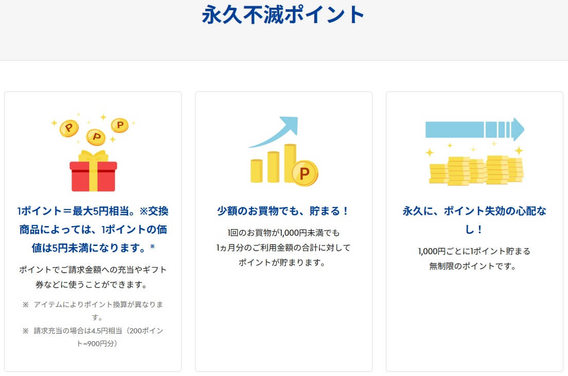 また、保険料の支払いが必然的にセゾンカードとなり永久不滅ポイントが貯まるのもメリットでしょう。永久不滅ポイントは、その名の通り使用期限が無いため長期間かけて大量のポイントを貯められます。昨今では期限が無いポイントでも一部のポイントを期間限定ポイントにしているケースがありますが、そういった煩わしさが永久不滅ポイントにはありません。