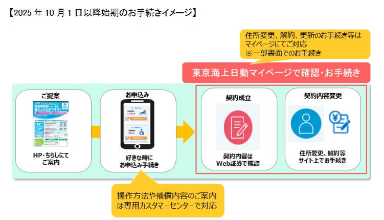 インターネットでの申し込みが可能となったことで、各種の変更手続きもインターネットから可能となりました。東京海上のマイページにログインすれば契約内容を確認でき、住所変更・改姓等の手続きもマイページを通じて手続きができます。
