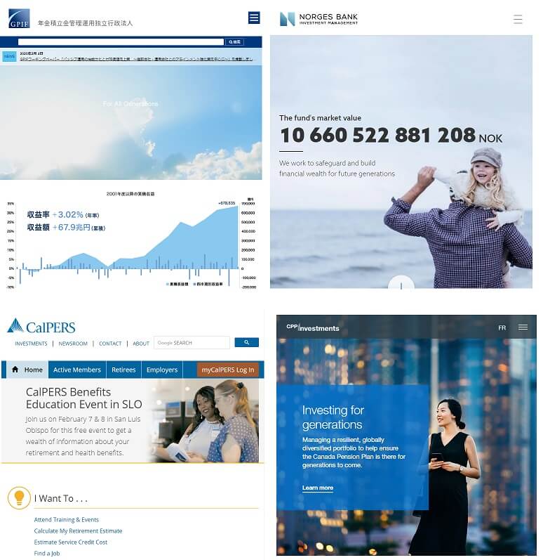 また、いち早く投資対象を全世界に広げたカナダ公的年金投資運用(CPPIB)も有名です。CPPIBは非上場企業の株式にも積極投資しており、黎明期のSkype社に19億ドルを投資して66億ドルで回収したことは有名です。最近ではESG投資(環境・社会・企業統治を重視する企業への投資)やグリーンボンド(気候変動対策に特化した債券)へ積極投資を行っています。