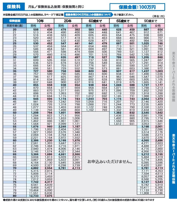 この保険のデメリットは、まずは返戻率が他社よりも低い点が挙げられます。もちろん告知項目が緩和されている点は評価できます。例えば楽天生命の引受基準緩和型の定期保険だと、50歳男性・保険金100万円・70歳満了で毎月の保険料は1601円です。